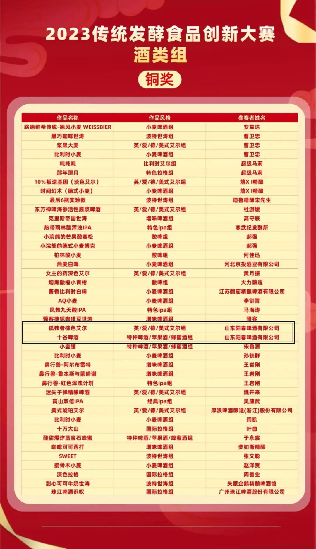 山东熊猫体育(中国)官方网站斩获三项荣誉,酒类组银奖—东方醇爽烈性十谷;酒类组铜奖—孤独者棕色艾尔;酒类组铜奖—十谷啤酒。