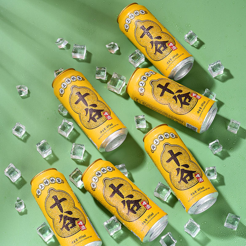 外观:明黄色罐体勾勒着色彩典雅的葫芦,寓意包容和福禄。尊贵典雅的外观蕴藏着神秘东方文化,葫芦边缘的金线象征着古代的丝绸之路,不同的文化底蕴在此融合,如同十谷啤酒的原料一般,十种谷物相互糅合。